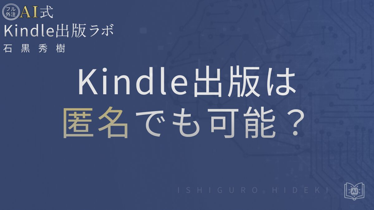 一方で、アカウント登録や印税の受け取りでは本人確認が必須です。そのため、「Amazon上では匿名だけど、内部的には本人が特定できる」という仕組みになっています。
